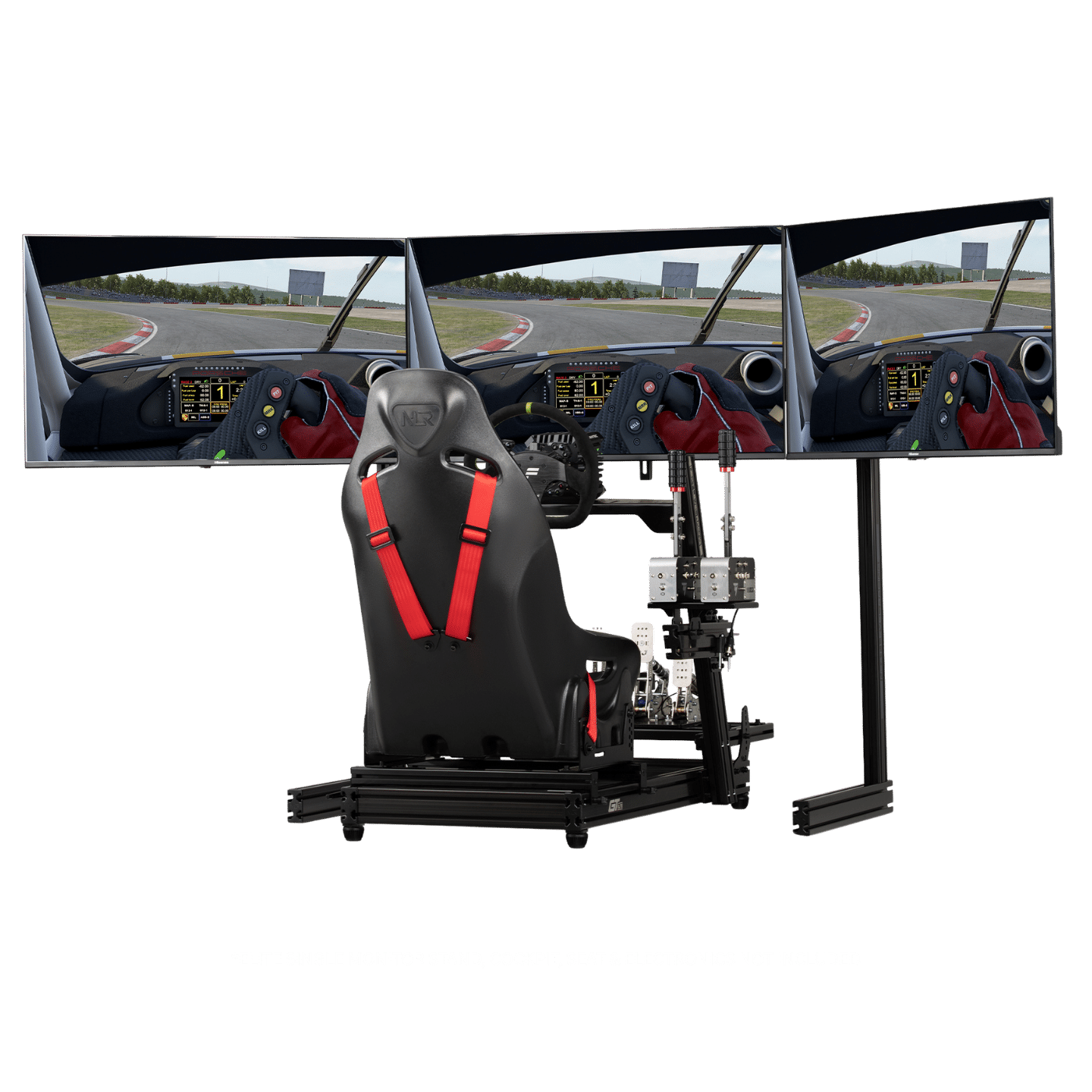 After countless hours of design and development, the Elite Freestanding Triple Monitor Stand Add On aims to fulfil the Elite sim racer’s dream – unparalleled freedom of adjustment (500mm Horizontal and 18 degrees Tilt on each screen) and fine-tuning options for the ultimate triple screen racing setup, with the rigidity to back it up. Next Level Racing Traction Plus platform customers will be treated to added immersion, by bringing the screens closer to their seated position with the adjustable width of the triple monitor stand.