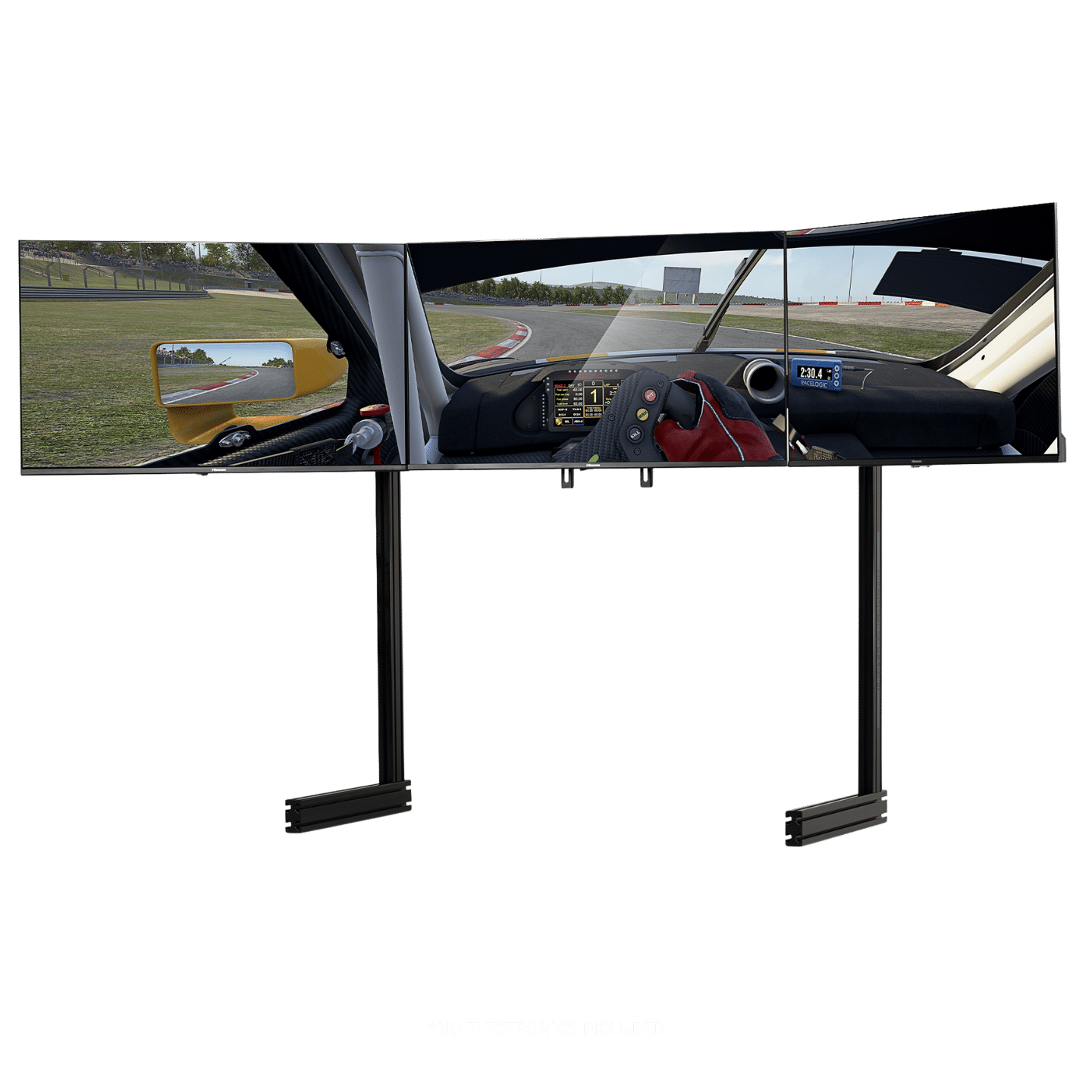 The Elite Freestanding Triple Monitor Stand Add On carries the same features as the high-quality anodised black finish to the laser engraved alignment lines as the rest of the Elite range of products and accessories, completing the dream triple monitor cockpit setup.