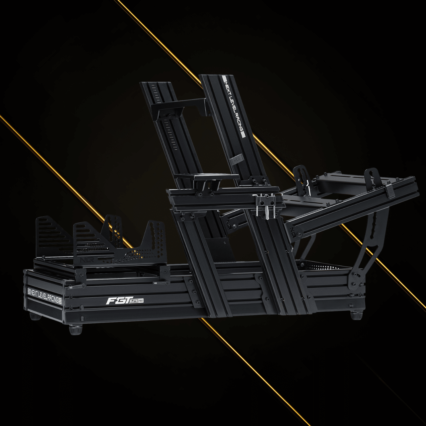 The NLR® F-GT Elite 160 Wheel Plate Edition is the ultimate cockpit for bottom-mounted wheelbases, pedal sets, shifters, handbrakes, bass shakers and more due to its universal compatibility. For simulation enthusiasts that are looking to take their setup to the next level, the F-GT Elite 160 Wheel Plate Edition is also compatible with the NLR® ecosystem of Motion products*.