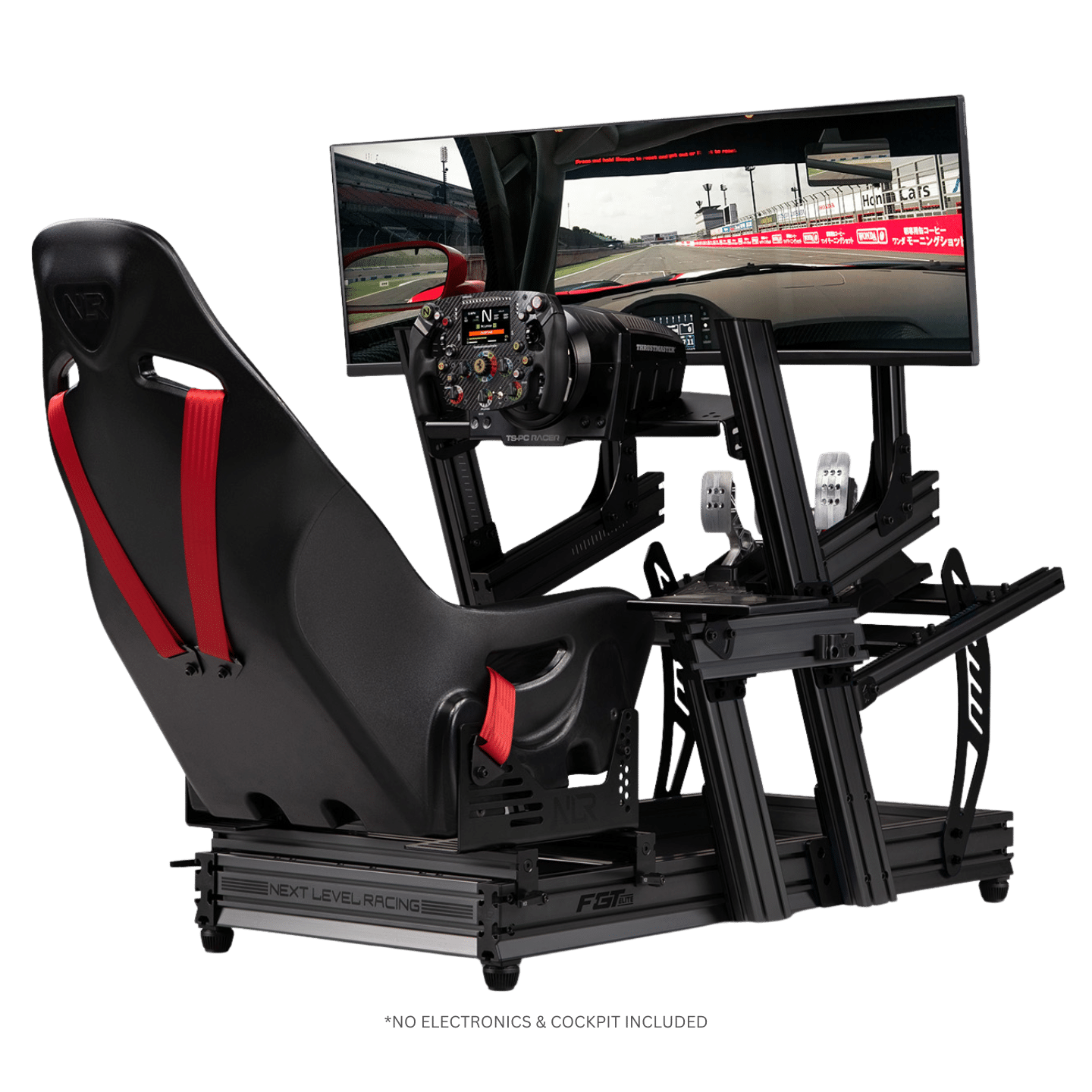 The NLR® F-GT Elite Direct Monitor Mount in Carbon Grey Edition, is the perfect solution for the serious sim racer to create a fully immersive racing experience. The F-GT Elite Direct Monitor Mount will offer drivers the perfect monitor placement, completing the ultimate racing simulator setup. With design and aesthetic in mind, the F-GT Elite Direct Monitor Mount will create an all-in-one racing station for users to fully immerse in simulation. *If you are considering adding the Motion Plat Plus or Traction Plus Platform products, we recommend exploring one of our Elite Free Standing Monitor Solutions as the motion experience during simulation could affect your Monitors/TVs.