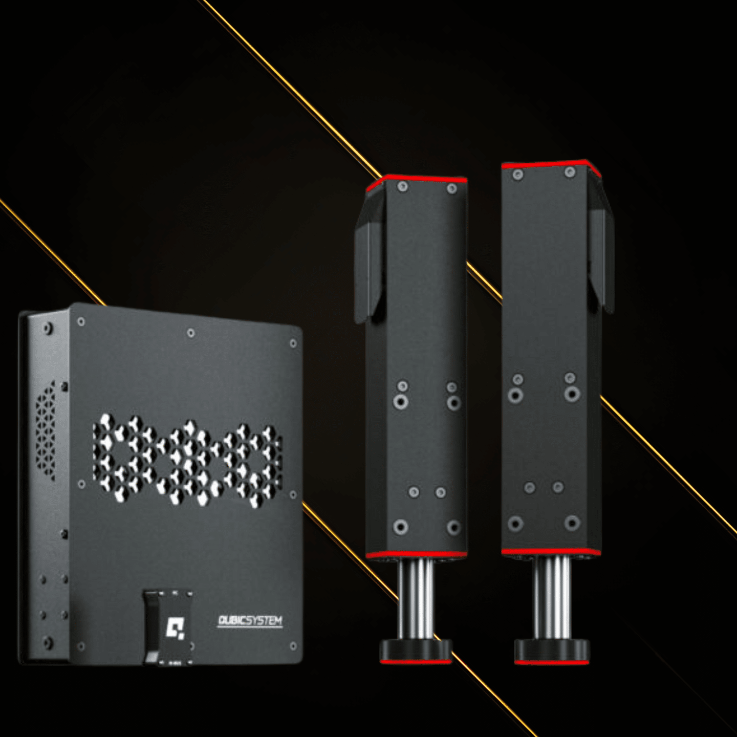 3DoF linear actutors set is a perfect motion base for QS-CH1 cockpit, and most aluminum profile based cockpits available on the global market (using brackets). QS-210 works also with QS-CH2 motion platform.The concept of the Qubic System product and software ecosystem underscores the idea that the whole system works together synergistically to offer users enhanced value and functionality.