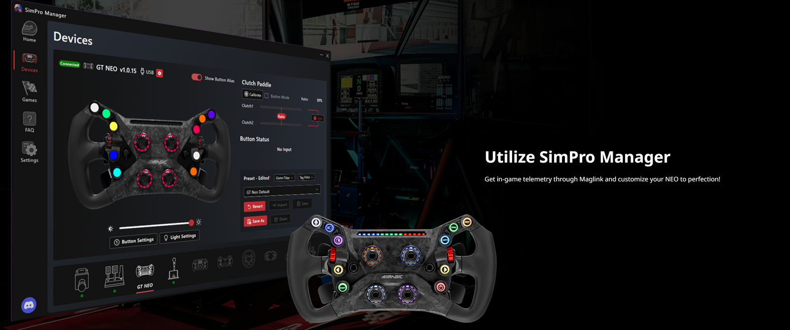 Now, with Maglinkâ„¢ *, you have the flexibility to utilize the GT Neo wheel on wheelbases other than SIMAGIC’s. This innovative magnetic connection enables you to enjoy the SIMAGIC experience without the need for the Alpha wheelbase.