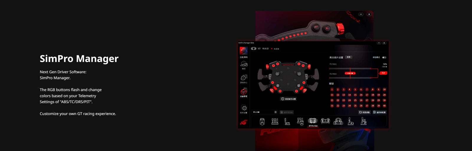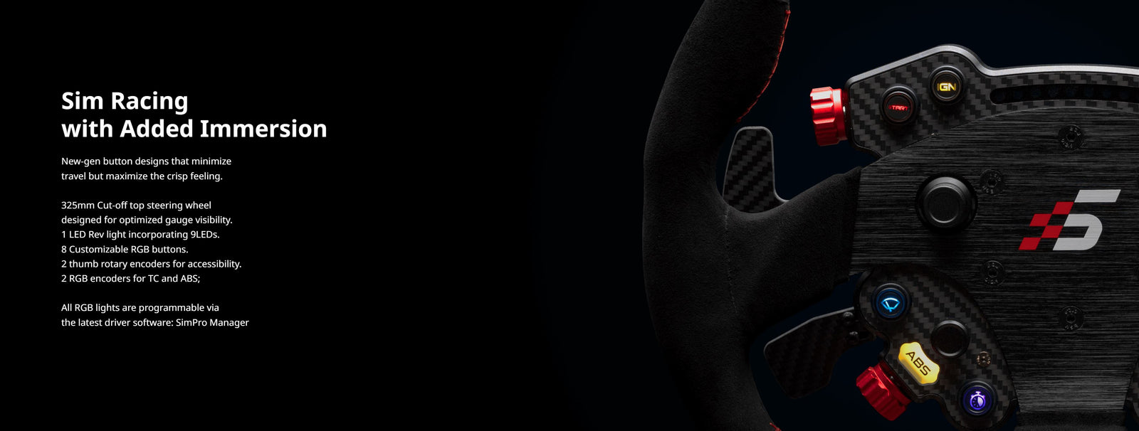 Featuring the latest developments from Simagic, including all new tactile rotary encoders, tactile RGB lit buttons and integrated shift lights, all fully customisable with Simagics new SimPro Manager software.