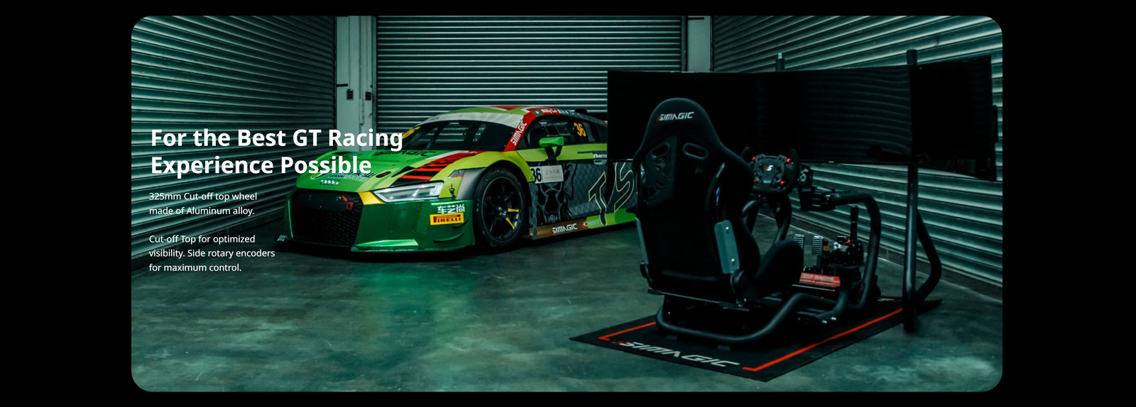 Presenting 325mm Aluminum cut-off top – Simagic GTC-C wheel for optimized visibility and quality constructed by genuine Seude/Leather grips.