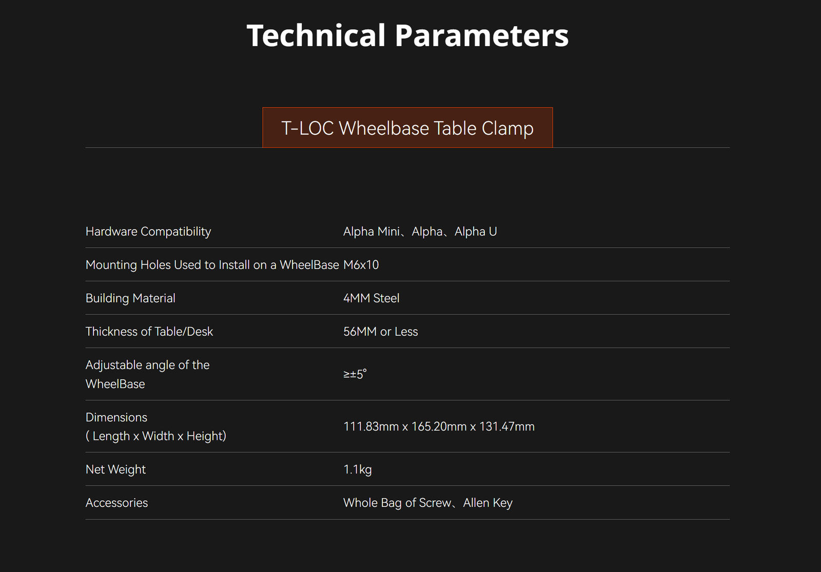 T-LOC Wheelbase Table Clamp